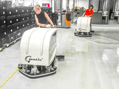 In der täglichen Unterhaltsreinigung sollte Gmatic® ultra 303 angewendet werden. Dieses tensidfreie Reinigungsmittel hinterlässt auf der gereinigten Verkehrsfläche einen sich bei jeder Reinigungsfahrt erneuernden Schutzfilm aus Polyether. Dieser Schutzfilm erhöht die elektrische Leitfähigkeit, ist nur molekular dünn und steigert die Trittsicherheit des Bodenbelags.